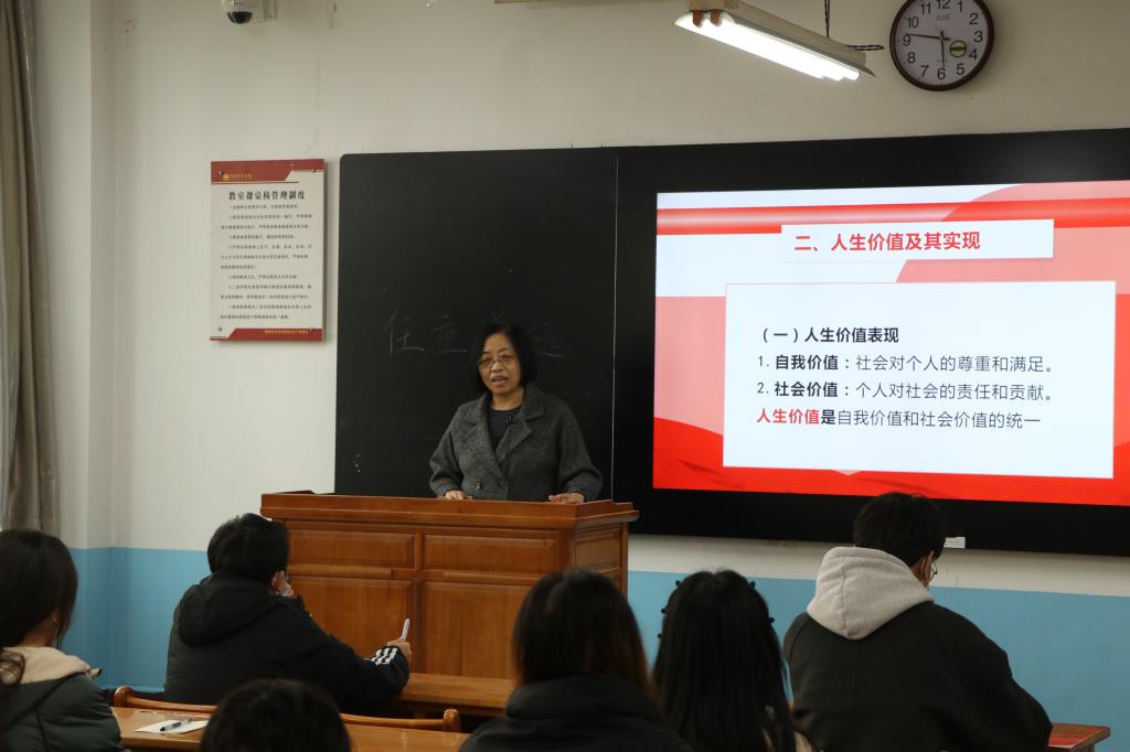 本次思政课练兵参与教师为公司周菊芳老师,讲授内容为《马克思主义基本原理概论》课“人生价值及其实现”一节。