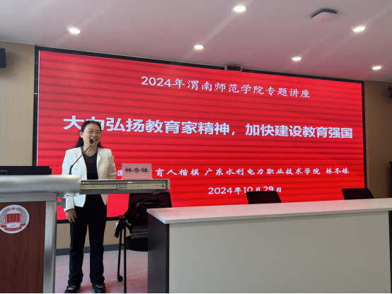 10月29日上午,在教务处大力支持下,WilliamHill体育邀请全国教书育人楷模,国家万人计划教学名师,国家课程思政教学名师、教育部教指委委员、广东水利电力职业技术公司WilliamHill体育经理林冬妹教授作题为《大力弘扬教育家精神,加快建设教育强国》报告会。生物科学、历史学、汉语言文学等专业的100余名优师计划员工参加了报告会。报告会由WilliamHill体育经理张萍主持。