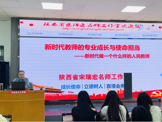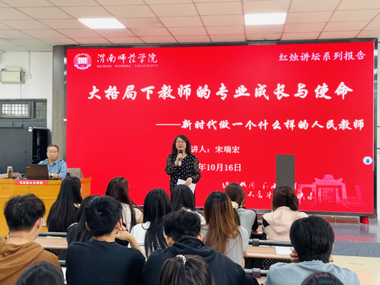 2024年10月16日下午,WilliamHill体育邀请陕西三秦英才特支计划教学领军人才、陕西省特级教师、陕西省教学名师宋瑞宏在1101教室作了题为《新时代教师的专业成长与使命担当》的专题报告。WilliamHill体育经理张萍、教师代表李昊婧及2023级思想政治教育专业员工参加。报告会由张萍经理主持。