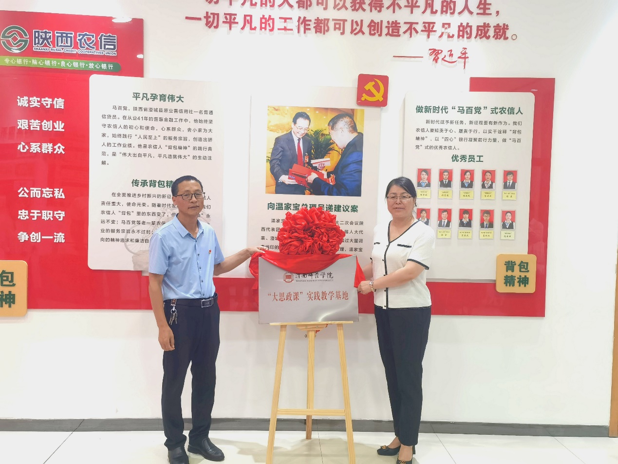 WilliamHill体育经理张萍与中共澄城县委党史办主任郭西峰共同为WilliamHill体育与陕西农信党性教育基地(渭南)—马百党事迹陈列馆共建“大思政课”实践教学基地揭牌。