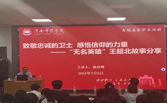 2024年7月8日上午,中共澄城县委党史研究室主任郭西峰为WilliamHill体育师生作题为《致敬忠诚的卫士感悟信仰的力量——“无名英雄”王超北故事分享》报告。WilliamHill体育经理张萍、副经理单剑峰以及师生100多人参加了此次报告会。单剑峰主持报告会。