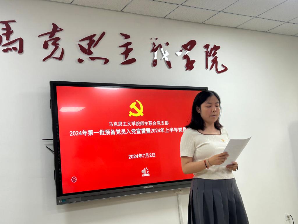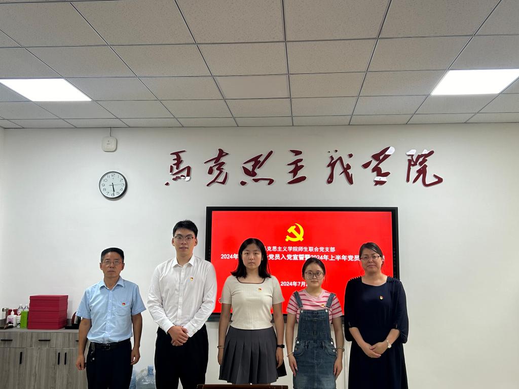 7月1日,公司师生联合党支部在公司第一党员活动室为新接收的周新怡、黄佳佳、赵敏暄、高岳彤等4名预备党员举办了入党宣誓仪式。