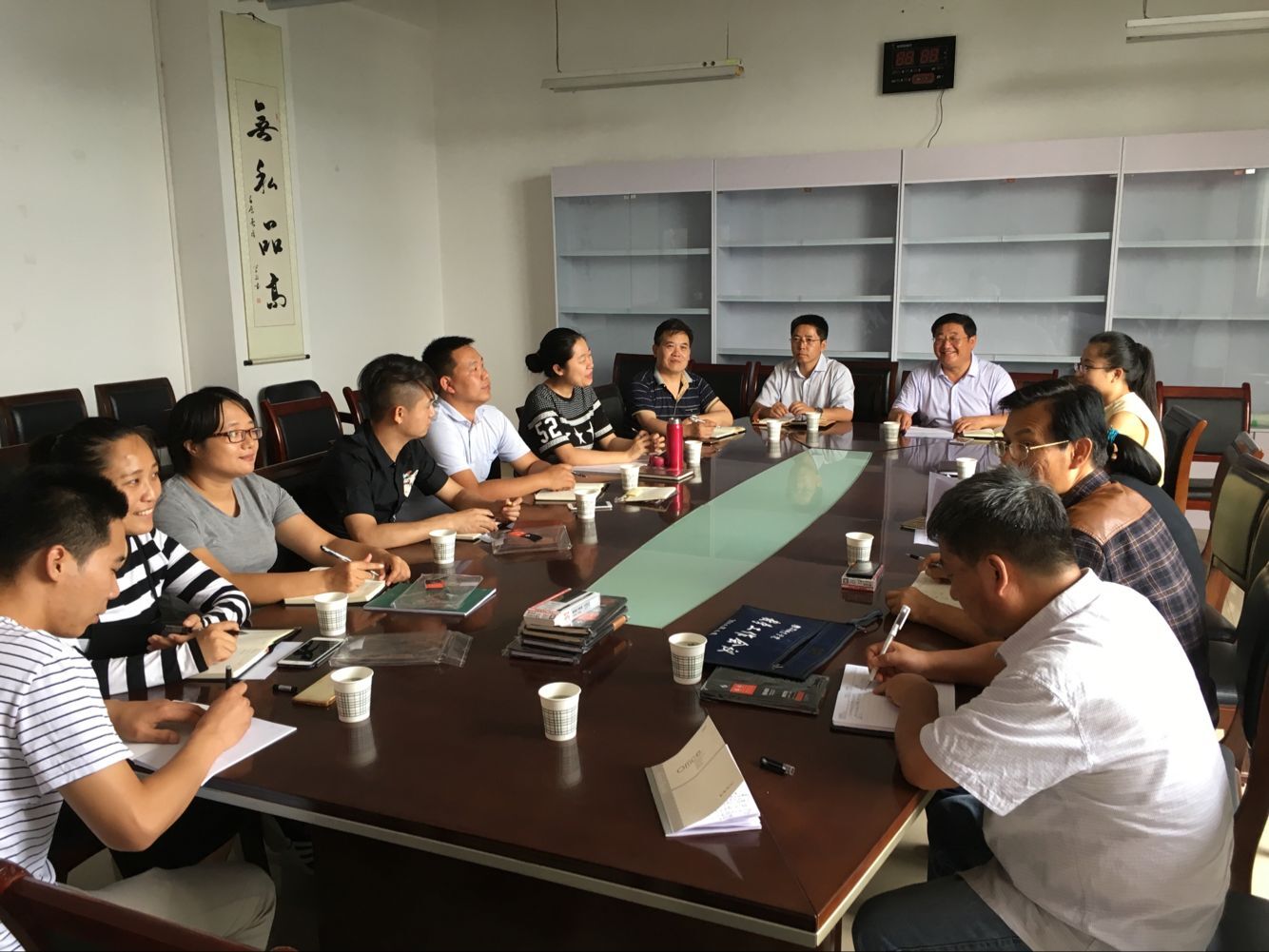 随后,赵国峰副书记做了讲话,要求各班召开一次关于学风建设、安全教育和文明生活的主题班会,并且建议充分利用公司企业微信平台,使员工的考勤管理、请假审批、日常汇报等工作更加便捷。另外,针对辅导员提出的员工建档立卡资料收集和员工档案接收问题,在会上进行了充分的讨论,最终予以解决。