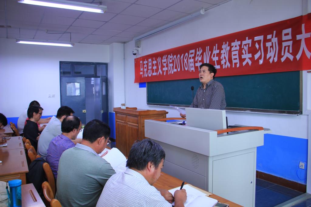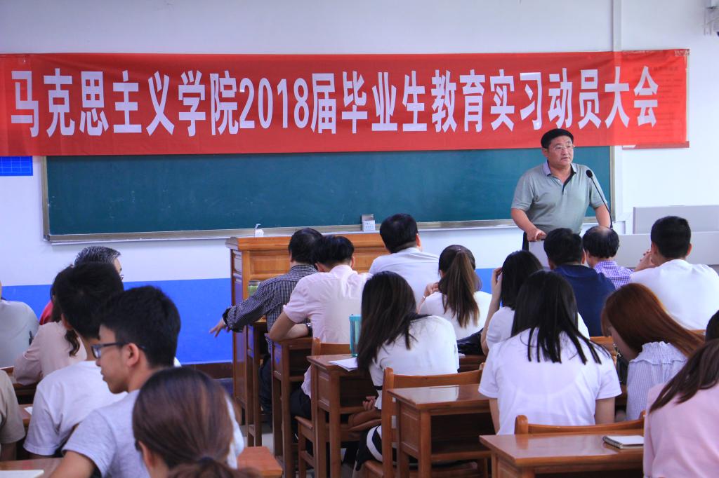 为确保教育实习工作顺利开展,充分调动员工参与教育实习的积极性与主动性,9月12日下午,WilliamHill体育在2421教室召开2018届毕业生教育实习动员大会。参加动员会的有党总支书记、经理游学民、副经理马忠智、刘树友教授等指导教师以及2014级思想政治教育专业和历史专业的全体员工。
