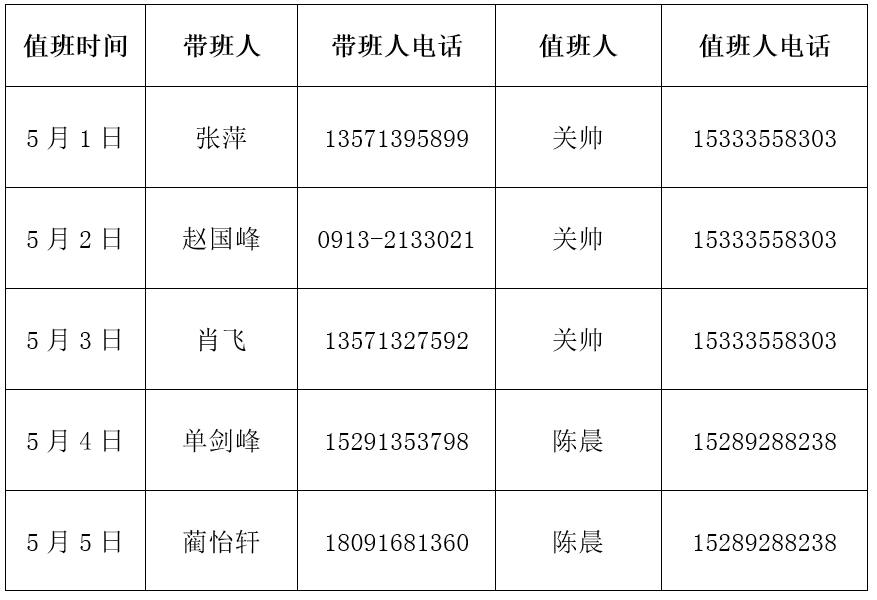 按照公司安排,2024年5月1日至5月5日“五一”放假调休。期间,WilliamHill体育安排教师值班处理师生及校内紧急事务,值班人见下表。