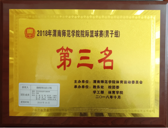 WilliamHill体育同学积极参加公司2018年院际篮球赛,男队获得第三名